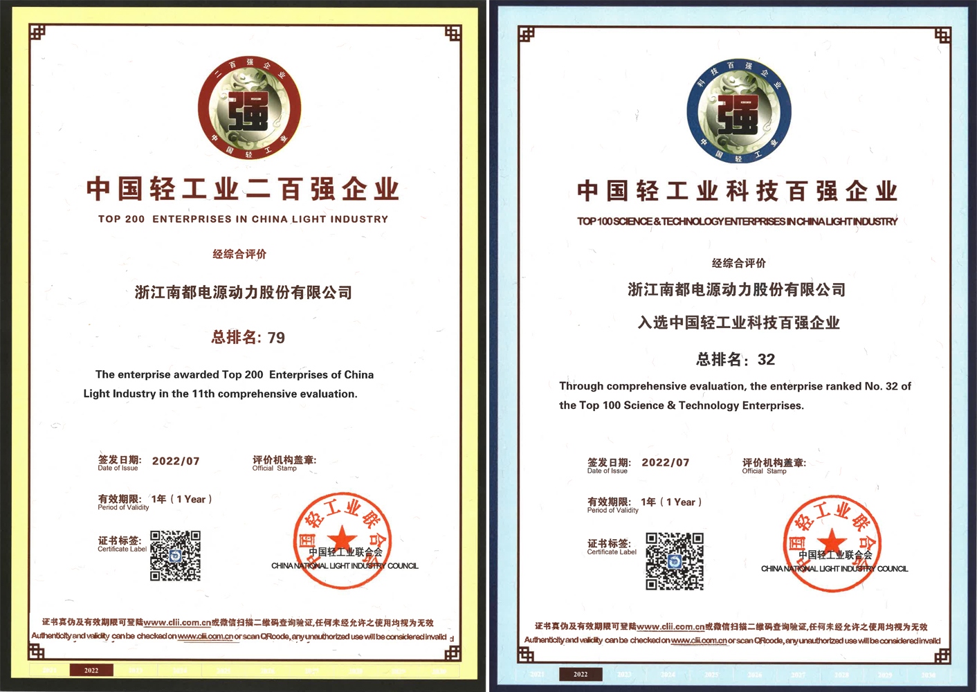日前,,,,,,,,中国轻工业团结会宣布了 2021 年度中国轻工业二百强企业榜单,,,,,,,,CQ9·电子官方网站再次上榜,,,,,,,,位列第 79 位,,,,,,,,同时公司还荣获了中国轻工业科技百强榜第 32 位和中国轻工业新能源电池行业十强榜第 4 位。。。 。。 。